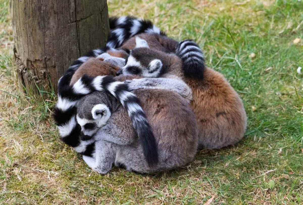 Những con vượn cáo đuôi vòng không phải loài vật lười biếng nhất nhưng chúng đáng yêu nhất khi trở nên lười biếng. Khi đến lúc cần phải ngủ, những con vượn cáo đuôi vòng sẽ cuộn tròn và ôm lấy nhau ngủ.