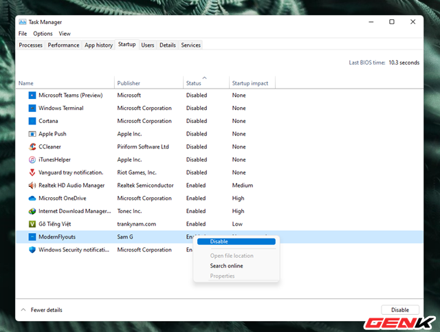 3. Vô hiệu hóa các tác vụ khởi động cùng Windows