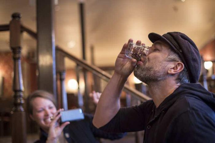Ông Dick Stevenson đã có hàng chục năm gắn bó với món đồ uống kỳ lạ của mình. Ảnh: Downtown Hotel.