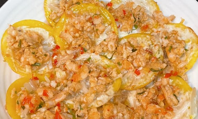 Bánh khọt thường được làm từ bột gạo, bột nghệ, ăn kèm nhân tôm và nước mắm ngọt.