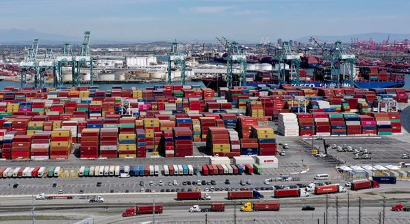 Tại hai hải cảng lớn nhất của Mỹ ở Long Beach và Los Angeles, miền Nam California, nhiều tàu chở hàng hóa xuyên lục địa phải thả neo gần bến để chờ xuống hàng vì tình trạng tắc nghẽn hiếm thấy trong ngành hàng hải.