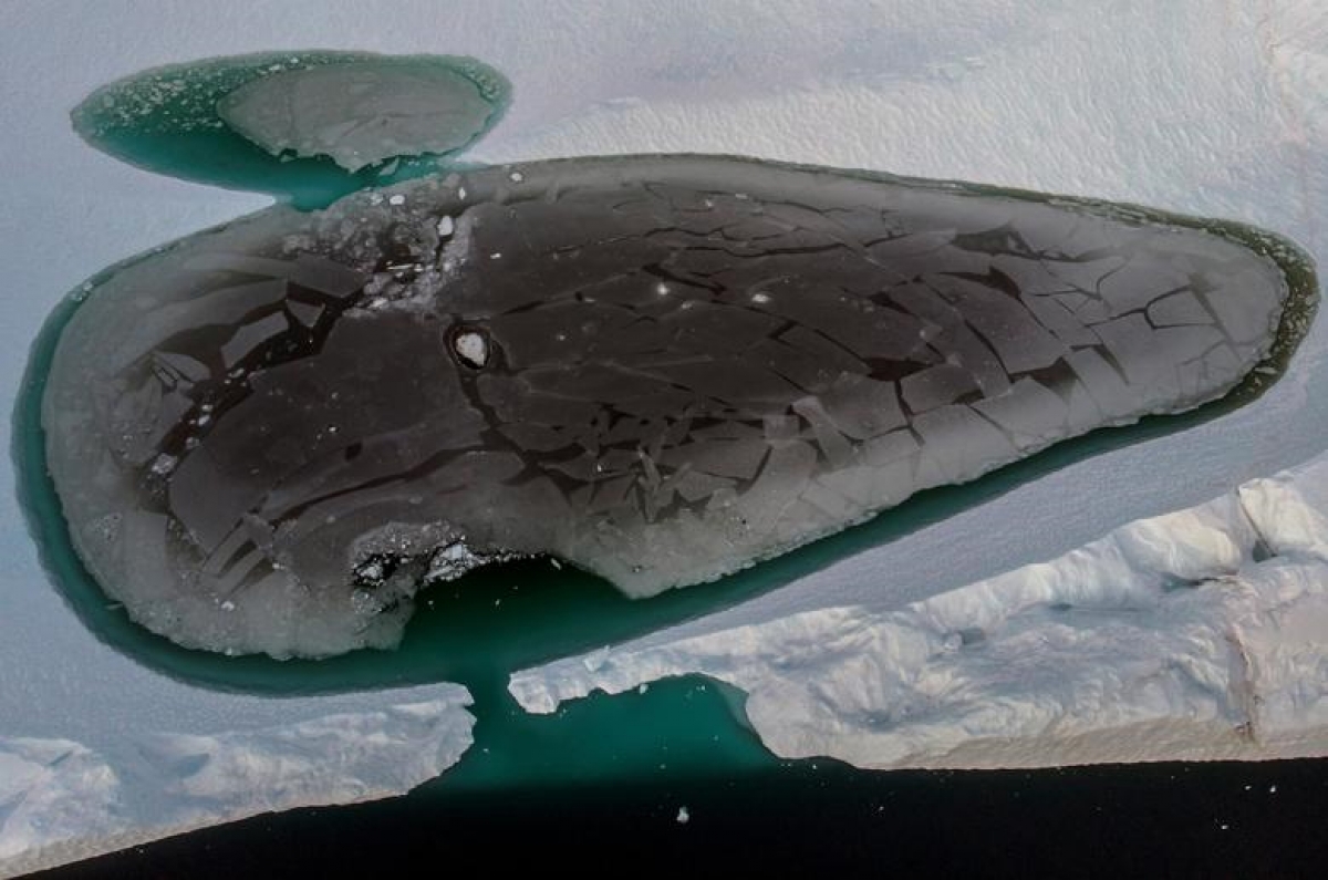 Nước tan chảy trên một tảng băng trôi ở Vịnh Disko gần Ilulissat, Greenland, ngày 14/9/2021.