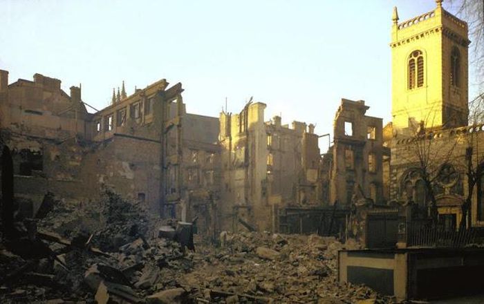 Nhiều tòa nhà ở London chỉ còn sót lại vài phần bức tường khi đối mặt với các cuộc rải bom suốt nhiều ngày đêm của kẻ thù.