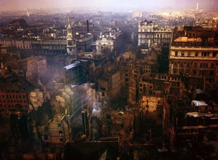 Một góc London bị thiệt hại lớn sau các cuộc ném bom của Đức quốc xã. Trùm phát xít Hitler phát động cuộc chiến với Anh nhằm chiếm đóng nước này, bành trướng lãnh thổ.