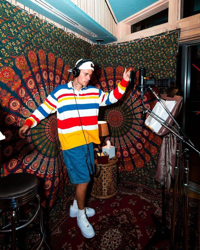 Khi phong cách preppy trở lại cùng xu hướng cổ điển, những chiếc áo kẻ sọc được giới trẻ tìm kiếm. Justin Bieber cùng Dua Lipa là những người dẫn đầu xu hướng này. Thiết kế nhiều màu sắc được anh phối cùng quần short và mũ beanie để tạo nên tổng thể năng động, mang hơi hướm hip hop.