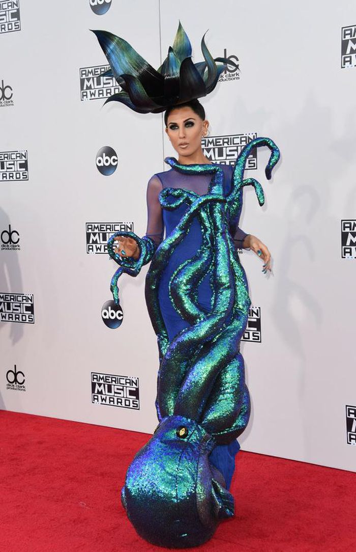 Z Lala không chỉ nổi tiếng với tài năng ca hát bằng 21 thứ tiếng. Cô còn gây ấn tượng mạnh với người hâm mộ bằng phong cách độc đáo. Tại thảm đỏ American Music Awards, nữ ca sĩ khiến công chúng “đứng hình” với thiết kế độc dị. Đầu tư là vậy, Z Lala lại khiến người nhìn liên tưởng đến mụ phù thủy Ursula trong truyện cổ tích hơn là nữ hoàng biển cả.