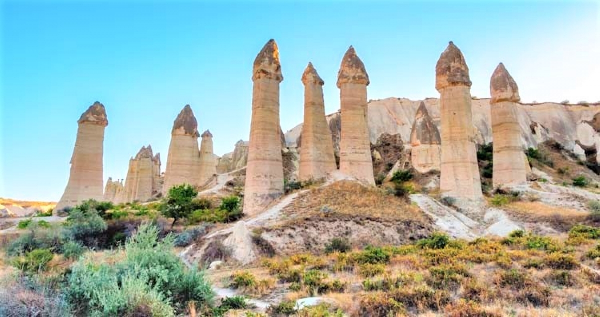 "Ống khói cổ tích", Thổ Nhĩ Kỳ: “Ống khói cổ tích” là những cột đá hình cây nấm, khẳng khiu nhô lên khỏi mặt đất được hình thành qua hàng triệu năm ở Anatolia, Thổ Nhĩ Kỳ. Phần mềm hơn của cột đã bị bào mòn bởi quá trình xói mòn, còn phần cứng hơn vẫn còn nguyên tạo nên những "ống khói" cao tới 37 m.