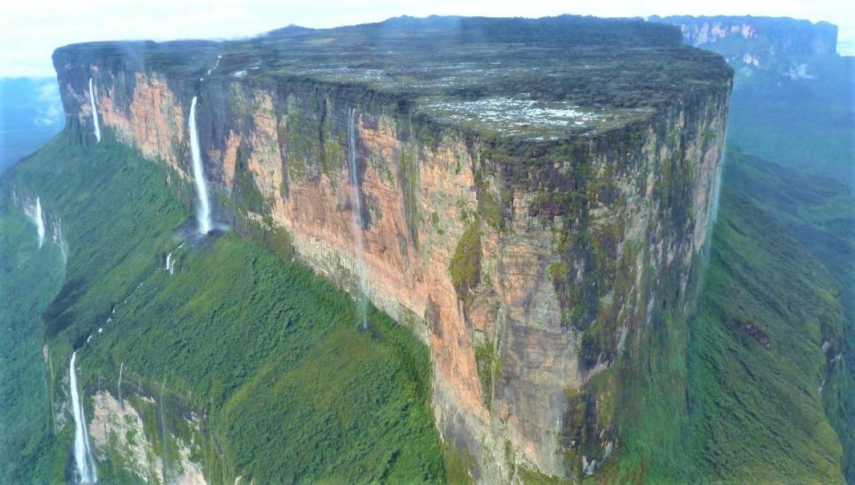 Núi Roraima, Venezuela: Núi Roraima là một ngọn núi với những vách đá cao 400m ở cả bốn phía, là điểm phân biệt ba quốc gia Venezuela, Brazil và Guyana. Nó nằm ở góc phía nam của Venezuela và là một phần của Vườn quốc gia Canaima. Các dãy núi trong đó có Roraima là một trong những thành tạo địa chất lâu đời nhất được biết đến - hai tỷ năm. Đây cũng là nơi có một số thác nước cao nhất thế giới, cũng là nguồn cảm hứng đằng sau cái tên "Thác Thiên đường" trong bộ phim Up của Pixar.