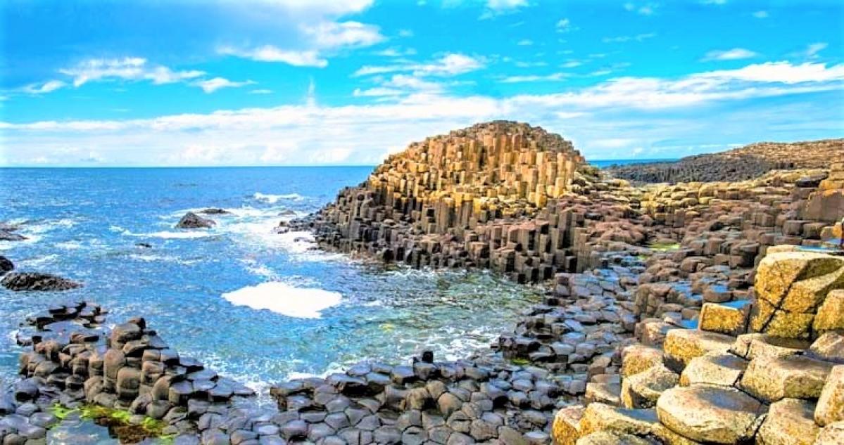 Cột đá, Bắc Ireland: Cột đá là khu vực của khoảng 40.000 cột đá bazan không đều, trông giống như những bậc thang xuống biển, cách Derry 40 km về phía đông bắc trên rìa Cao nguyên Antrim, giữa Causeway Head và Benbane Head. Các bậc thang được hình thành cách đây khoảng 50-60 triệu năm trong Kỷ Paleogen khi dung nham chảy từ từ di chuyển về phía bờ biển, nguội dần và sau đó tiếp xúc với biển. Các lớp bazan đã tạo ra các cột và áp lực giữa các cột dẫn đến các hình dạng đa giác này. Các bậc thang cao tới 25 m và có đường kính thay đổi từ 4,5-6 m. Cột đá được công nhận là Di sản Thế giới từ năm 1986.