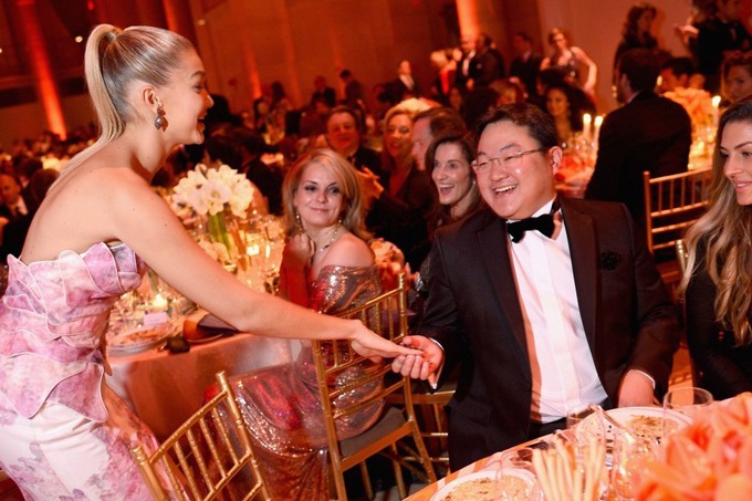 Tỷ phú Jho Low bắt tay người mẫu Gigi Hadid trong một bữa tiệc tại thành phố New York. Ảnh: AFP
