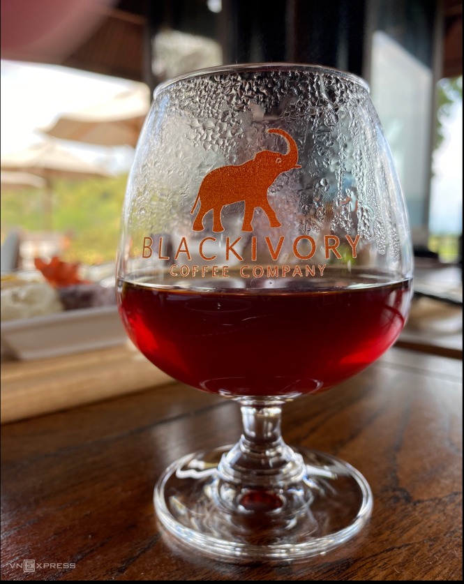 Sau khi rót cà phê vào ly thuỷ tinh, nhân viên pha chế dặn chúng tôi chờ một chút vì cà phê ngon nhất là lúc nhiệt độ khoảng 70 độ C. Thưởng thức cà phê cũng cũng như rượu vang, tuỳ vào khẩu vị của từng người mà hương vị khác nhau. Black Ivory được biết đến với hương thơm thanh dịu hoà cùng vị chocolate đắng, vị mạch nha, hương đất, mùi da thuộc, thuốc lá và mùi cỏ thơm.