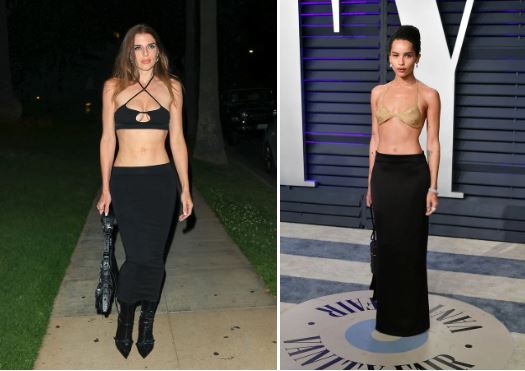 Trong khi Julia Fox đang tích cực lăng xê mốt diện áo bra, từ tháng 8/2019, báo giới đã săn đón chúng khi được Katie Holmes diện trong lúc đi mua sắm ở New York.