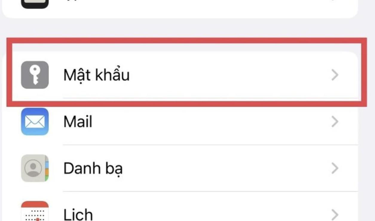 Bước 1: Vào Cài đặt > Chọn Mật khẩu > Nhập mật khẩu hoặc dùng Face ID hoặc Touch ID.