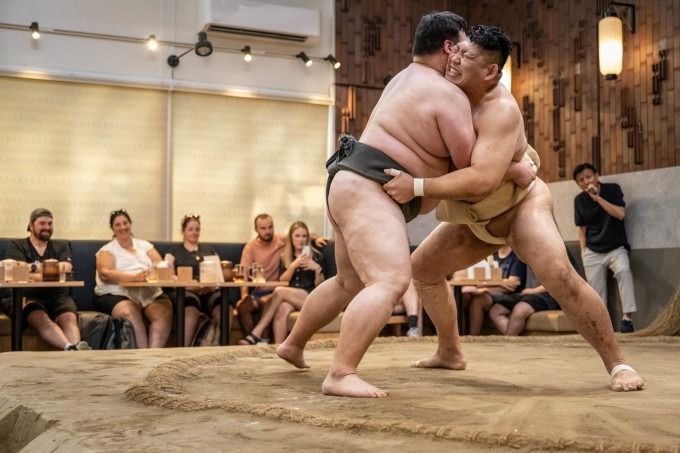 Trong chương trình buổi trưa tại một nhà hàng ở Tokyo hồi đầu tháng 7, hai đô vật Sumo trình diễn giữa tiếng vỗ tay của khách du lịch. Sau đó, khán giả háo hức chụp ảnh selfie với các đô vật to lớn.