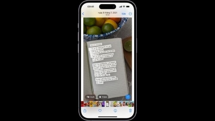 Ở một số dòng thiết bị Apple, bạn có thể dịch văn bản trong ảnh khi bạn xem một ảnh bao gồm văn bản. Ưu điểm của cách này là dễ sử dụng và tiện lợi, nhưng nhược điểm là chỉ áp dụng trên một số dòng thiết bị nhất định.