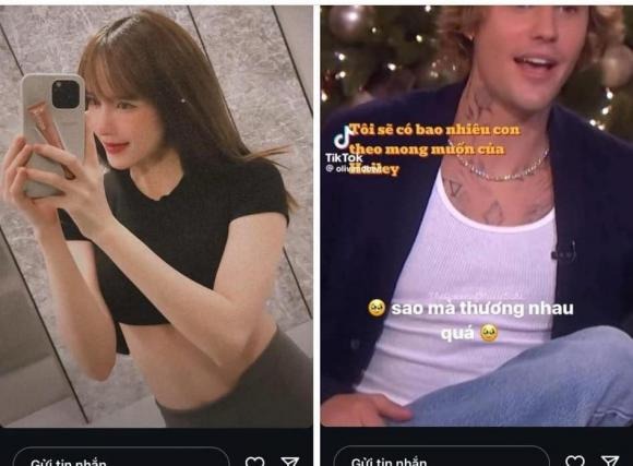 Vừa qua, Thiều Bảo Trâm đăng tải một story về Justin Bieber. Đáng chú ý, trong đoạn clip này, nam ca sĩ lại có chia sẻ về chuyện con cái. Cụ thể, anh cho biết: "Tôi sẽ có bao nhiêu con theo mong muốn của Hailey". Giọng ca Sau lưng anh có ai kìa còn bình luận: "Sao mà thương nhau quá". Từ việc này, nhiều khán giả cho rằng Thiều Bảo Trâm đang muốn có con với tình trẻ.