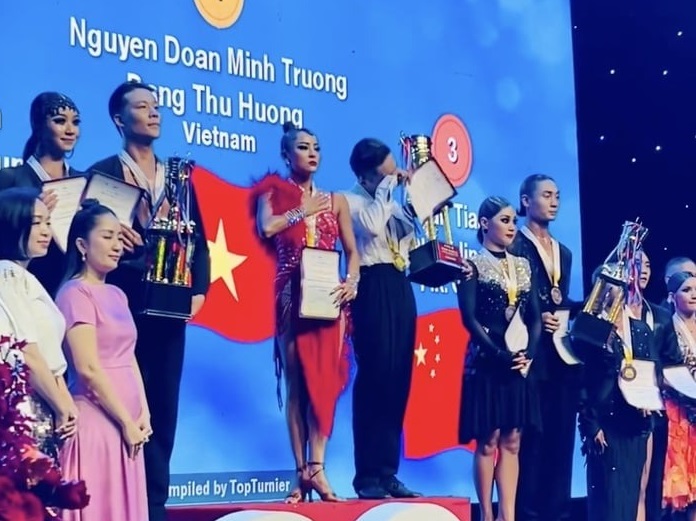 Tối muộn ngày thi đấu 13/7, vận động viên chủ lực Phan Hiển và Thu Hương đã giành huy chương vàng. Khánh Thi chia sẻ khoảnh khắc ông xã Phan Hiển bật khóc trên bục nhận huy chương khi Quốc ca Việt Nam vang lên. Khánh Thi chia sẻ: "Mỗi lần nghe Quốc ca là mỗi lần tự hào. Phan Hiển - Thu Hương top 1/52 WDSF World Challenge Cup Rising Stars Latin".