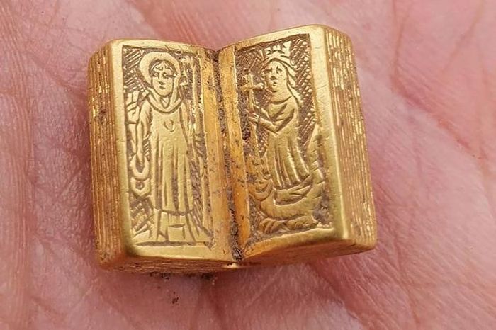 Sau đó, cô đào sâu xuống 13cm và tìm thấy một quyển Kinh thánh nhỏ bằng vàng có thể trị giá 100.000 bảng Anh (3,2 tỷ đồng).