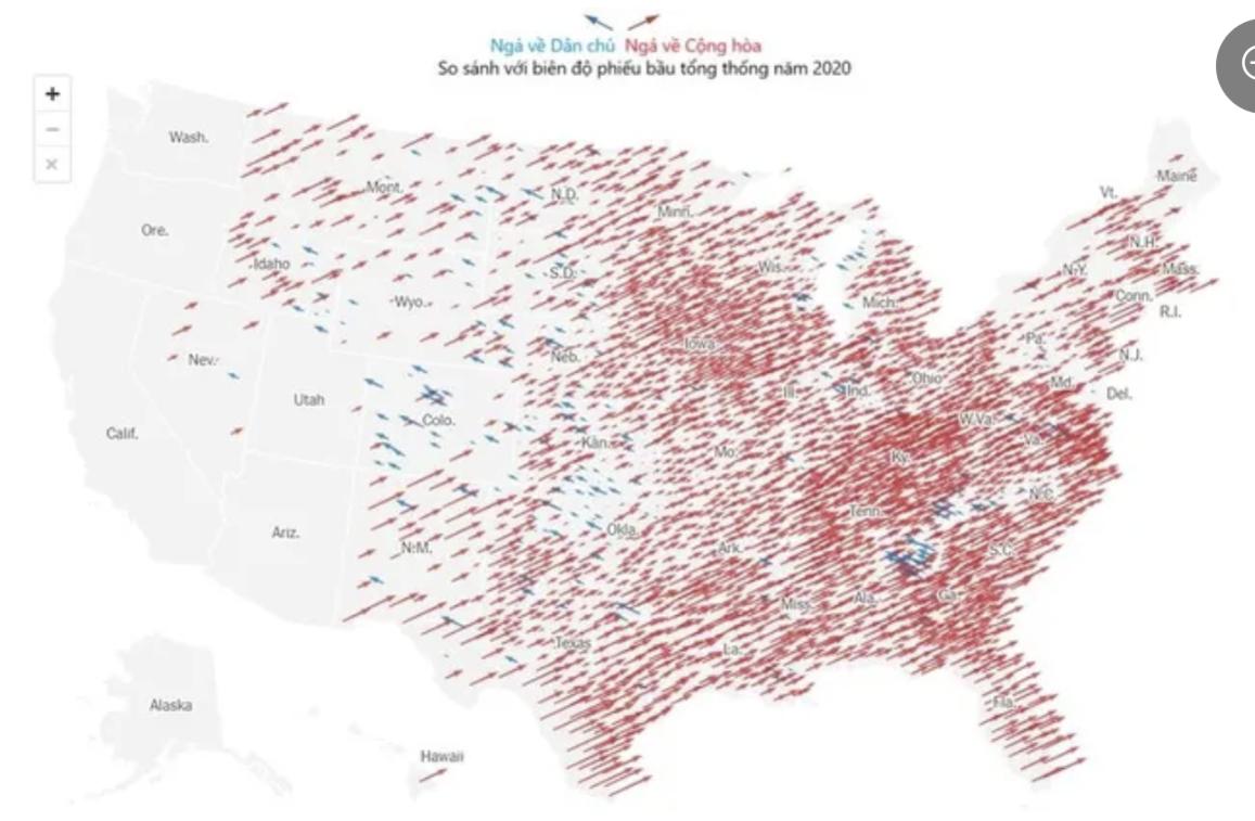 Ông Trump đã cải thiện biên độ ủng hộ năm 2020 của mình ở 2.367 quận. Biên độ ủng hộ của ông chỉ giảm ở 240 quận. Có 536 quận mà số phiếu được kiểm quá ít để đưa vào phân tích.