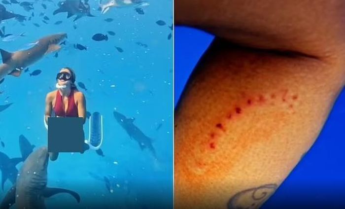 Daily Mail đưa tin, Lilian Tagliari, một người có sức ảnh hưởng trong lĩnh vực du lịch, đang bơi cùng đàn cá mập 50 con ở vùng biển ngoài khơi Maldives vào tháng trước thì bất ngờ một con cá mập cắn vào chân phải của cô.