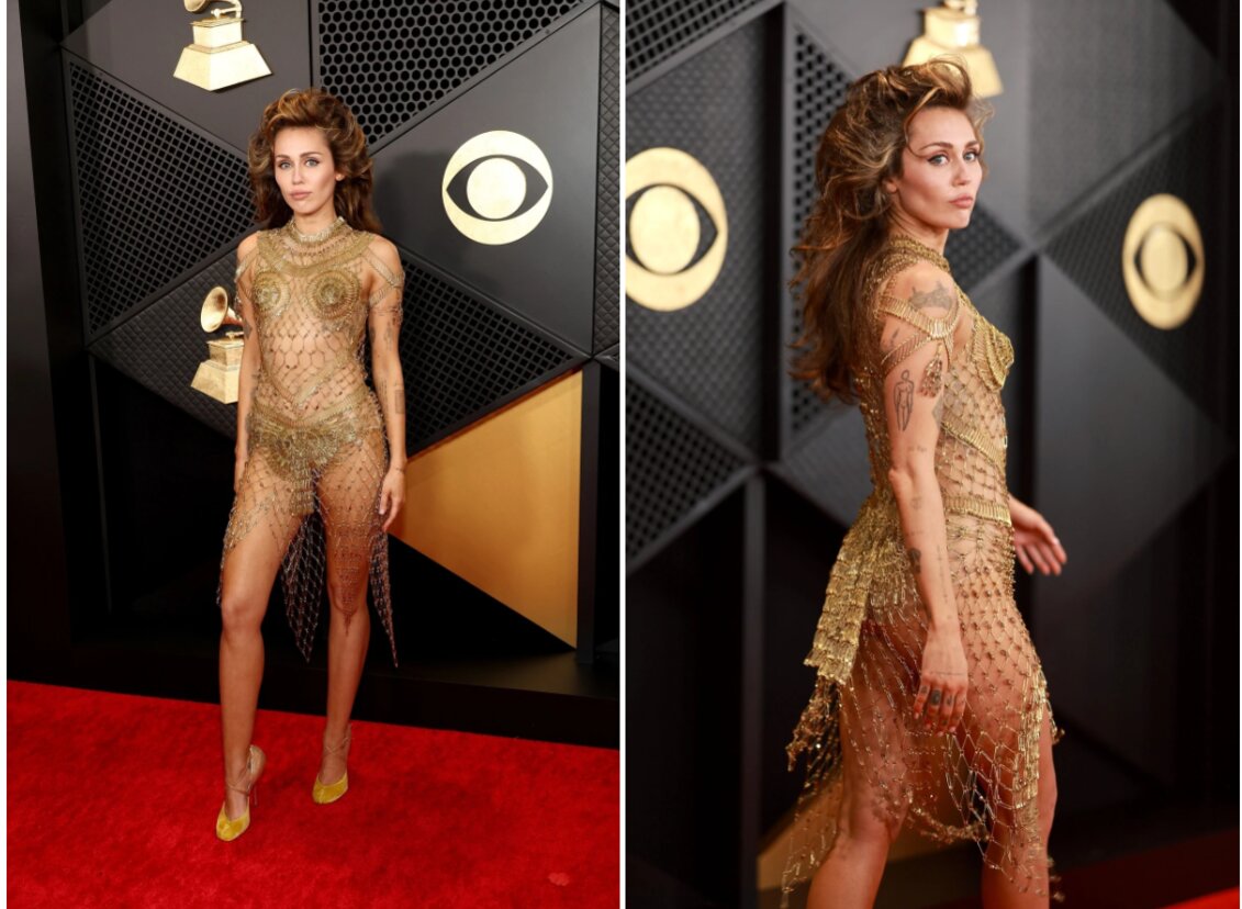 Miley Cyrus tại lễ trao giải Grammy: Chủ nhận hit Flowers không chỉ giành giải Bản thu âm của năm mà trang phục cô mặc cũng là chủ đề bàn tán trong nhiều tuần sau đó. Cả 5 outfit do stylist lâu năm Bradley Kenneth chuẩn bị cho Cyrus đều được đánh giá cao, nhưng chiếc váy hở lưng hiệu Maison Margiela trên thảm đỏ mới là thứ "đánh cắp" mọi ánh nhìn. Ảnh: People/Grazia.