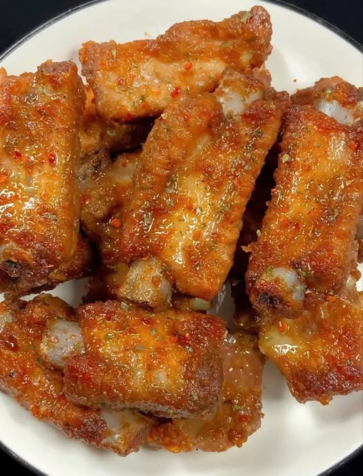 2. Dầu sôi, chirng lửa nhỏ rồi cho sườn vào rán khoảng 10 phút rồi cho to lửa lên, đun thêm khoảng 1 phút nữa thì tắt bếp, gắp sườn ra