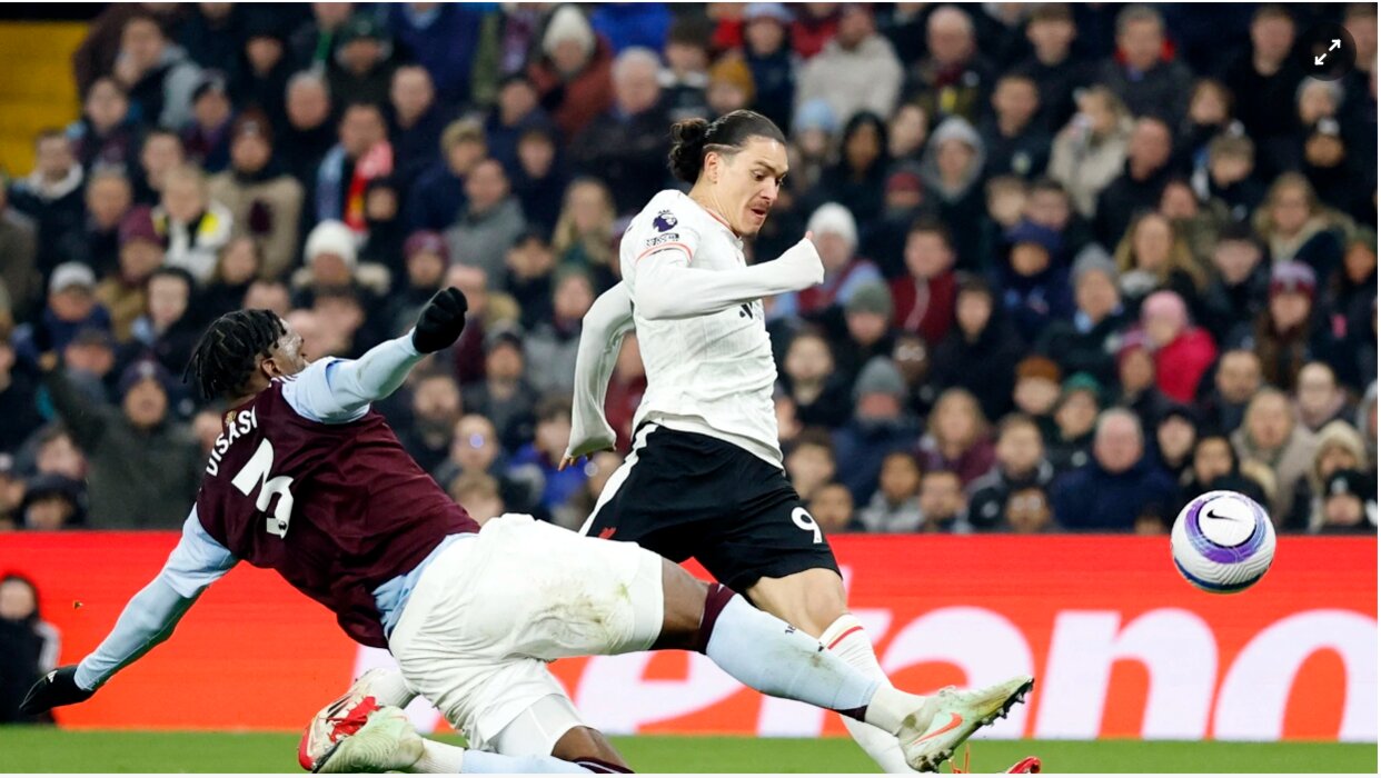 Nunez phung phí cơ hội trong trận hòa 2-2 giữa Liverpool và Aston Villa.