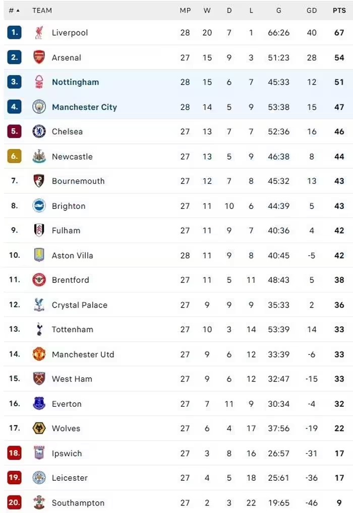 Đêm 8/3, Nottingham đánh bại Man City 1-0, qua đó đánh dấu chiến thắng đầu tiên trước đối thủ thành Manchester trong kỷ nguyên Ngoại hạng Anh.