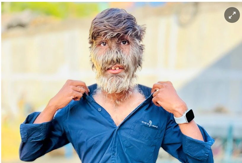 Chàng trai Ấn Độ mắc hội chứng cực kỳ hiếm gặp gọi là hypertrichosis (hội chứng người sói) từ khi sinh ra, gây nên tình trạng phát triển quá mức và bất thường của lông trên cơ thể. Trên thế giới mới ghi nhận 50 trường hợp mắc hội chứng này, theo The New York Post.