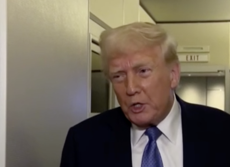 Tổng thống Mỹ phát biểu với các phóng viên trên máy bay. Ảnh: Reuters.