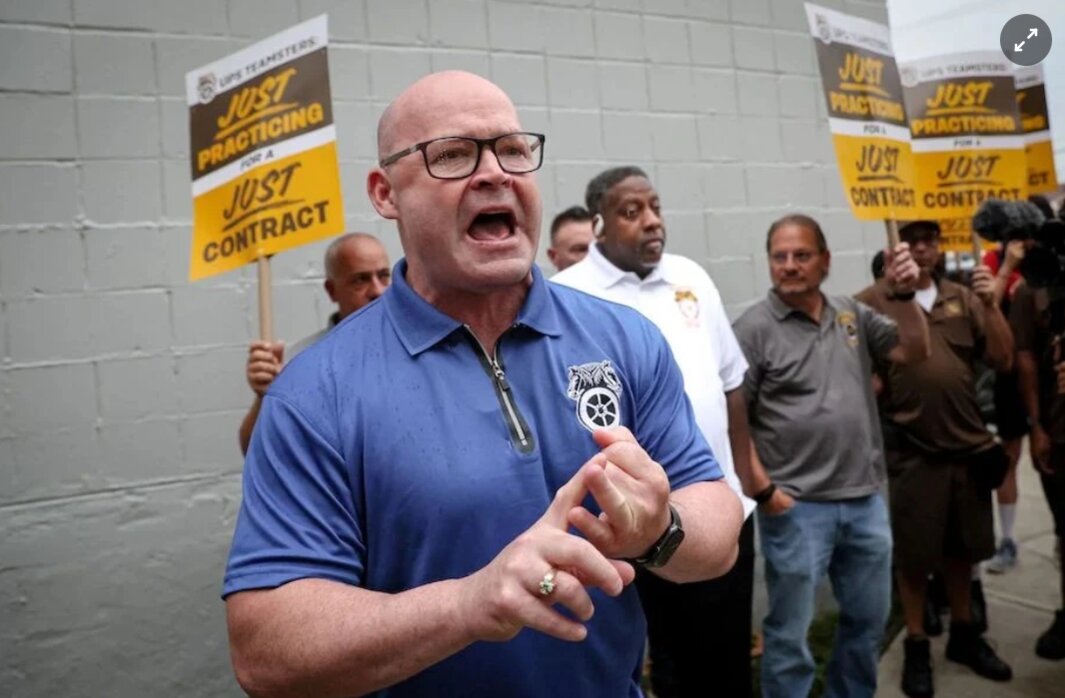 Sean O'Brien, Chủ tịch công đoàn Teamsters, phát biểu trong cuộc một cuộc biểu tình ở Brooklyn vào năm 2023. Ảnh: Reuters.