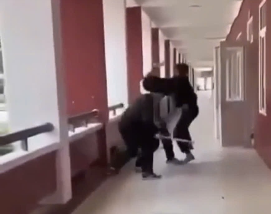 Hình ảnh các nam sinh Trường THPT Huỳnh Thúc Kháng đánh nhau. (Ảnh cắt từ clip)