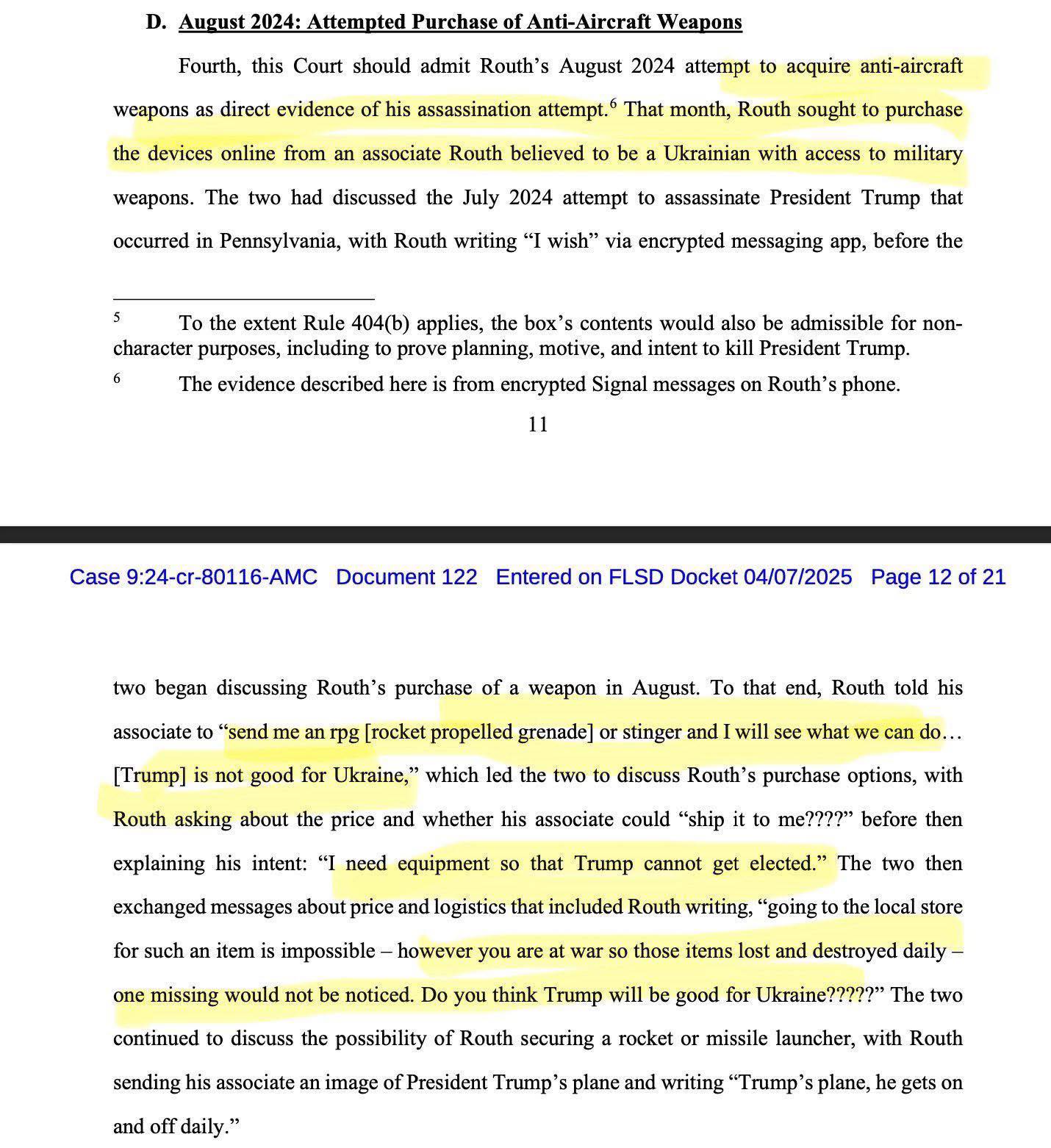 Routh đã yêu cầu Quân đội Ukraine cung cấp Stinger hoặc RPG để hạ gục Trump vì Trump sẽ có hại cho Ukraine