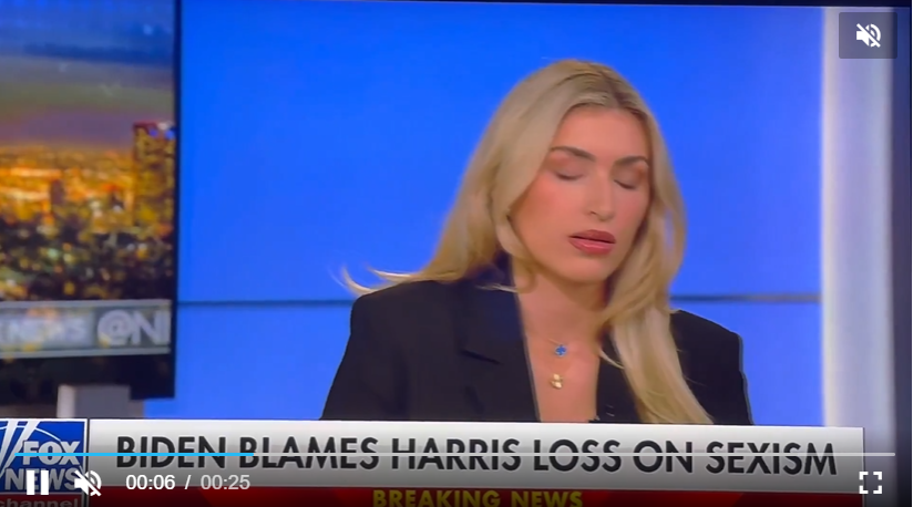Trong cuộc trò chuyện với người dẫn chương trình Jonathan Hunt, Kinsey chỉ trích những phát ngôn gần đây của Cựu Tổng thống Joe Biden trên chương trình The View. Nhà bình luận chính trị 24 tuổi cho rằng ông Biden đổ lỗi cho nhiều người Mỹ "phân biệt giới tính" về thất bại trong cuộc bầu cử năm 2024 của bà Kamala Harris trước Tổng thống Trump.