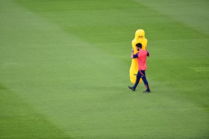 Vị thuyền trưởng của MU cẩn thận chỉnh lại thiết bị hỗ trợ tập luyện tại sân Bukit Jalil.
