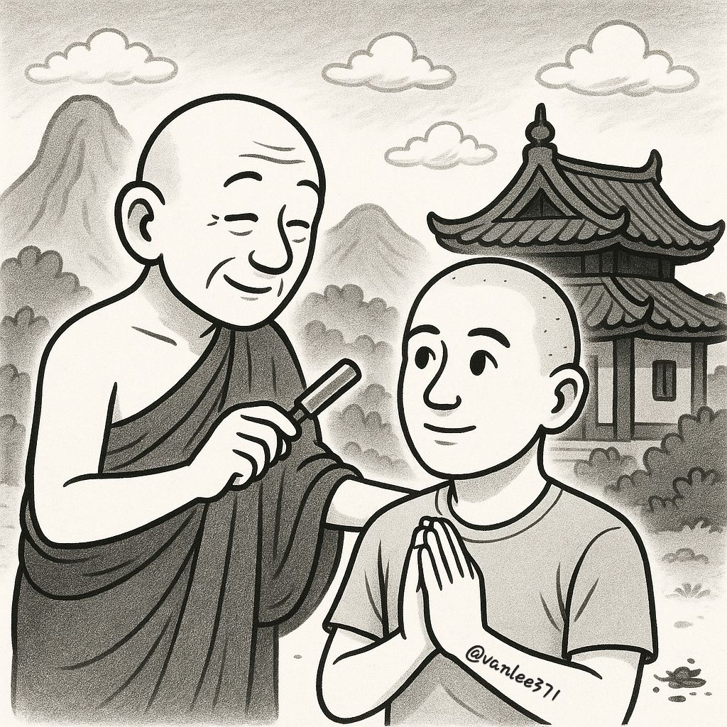 - "Thưa đại sư, con đã giác ngộ, không còn lưu luyến trần thế nữa. Xin đại sư hãy xuống tóc cho con!"