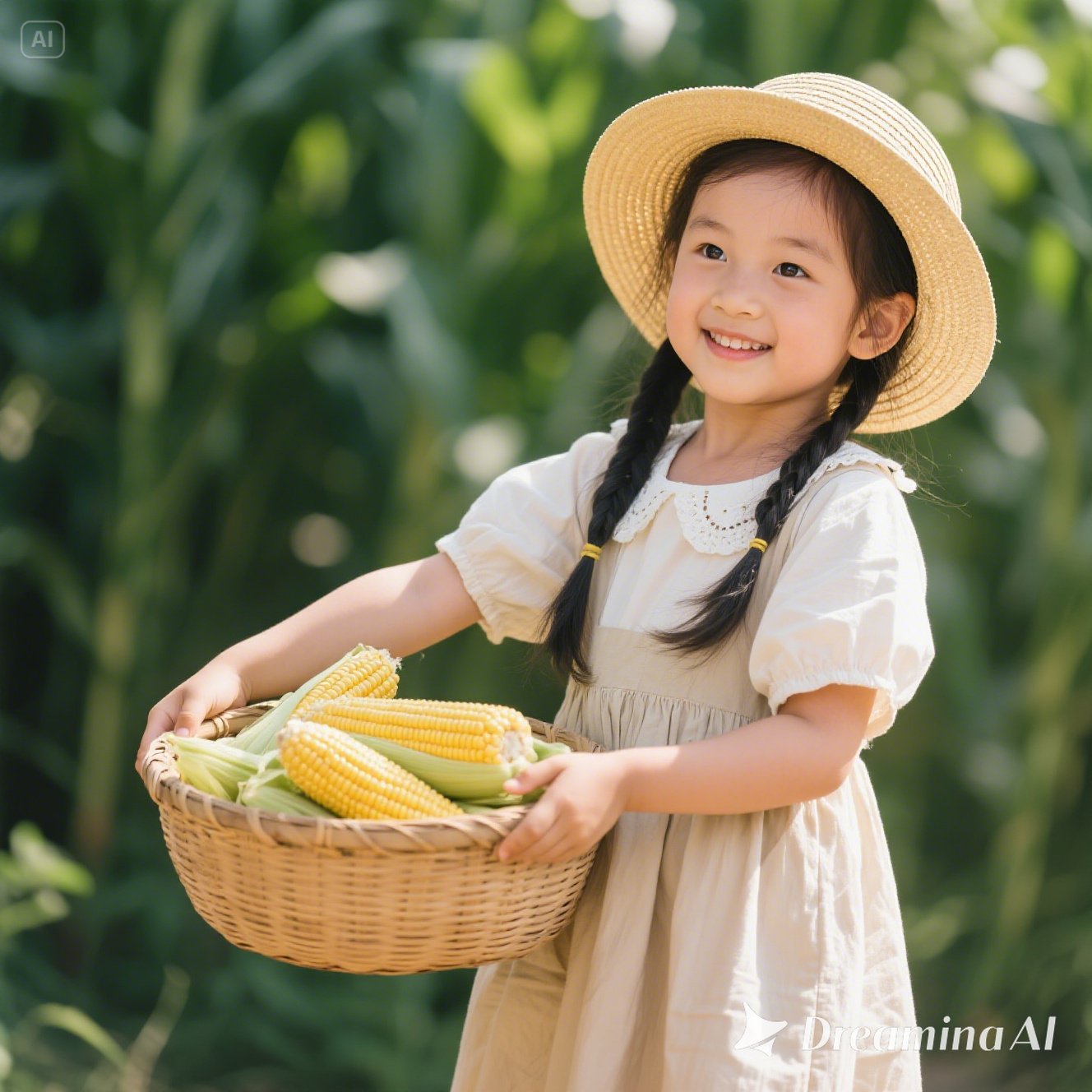 Trưa hè nắng gắt, một bé gái tầm 7–8 tuổi đội nón lá, tay xách giỏ bắp đi rao: