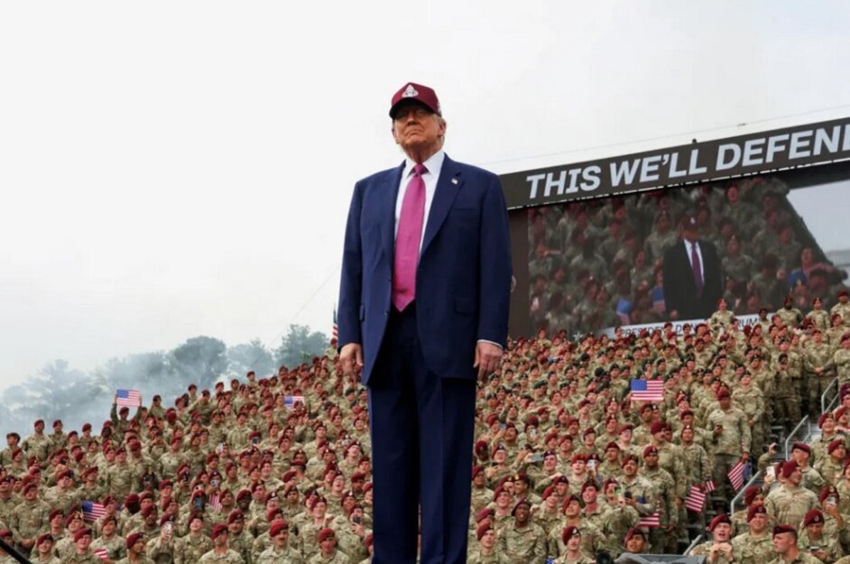 Tổng thống Mỹ Trump phát biểu trước hàng nghìn quân nhân ở Fort Bragg hôm 10/6. Ảnh: Donald Trump/Truth Social