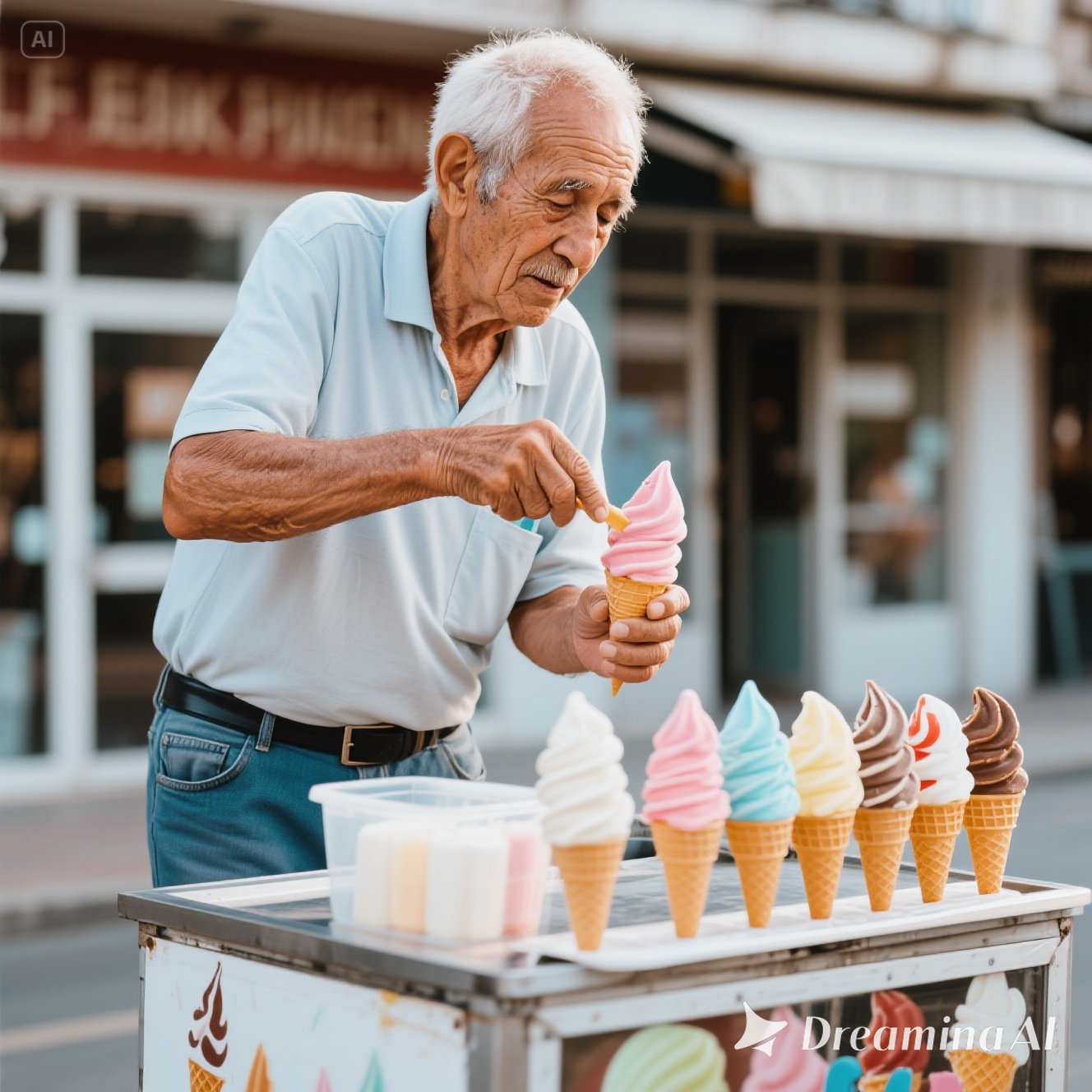Trên con đường nhỏ, có một ông lăo bán kem dạo. Mỗi buổi sáng, ông đạp xe chậm răi, miệng luôn mỉm cười, hát khe khẽ một bài hát cũ. Không ai rơ ông sống ở đâu, cũng chẳng biết tại sao ông chỉ bán mỗi buổi sáng.