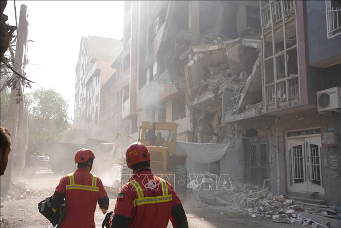 Toà nhà bị phá huỷ sau vụ oanh kích của Israel xuống Tehran. THX/TTXVN