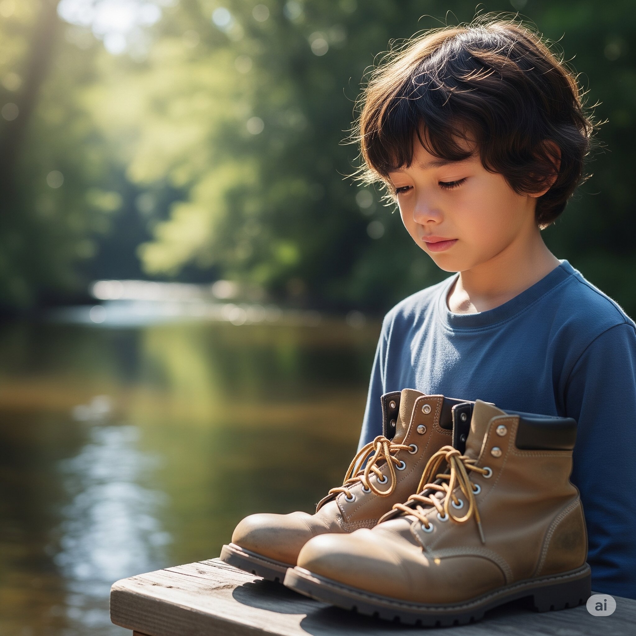 Sáng hôm đó, Nam lại bước đi bằng đôi chân trần. Khi đến suối, cậu thấy đôi giày đặt ngay ngắn, bên trong có một tờ giấy ghi: