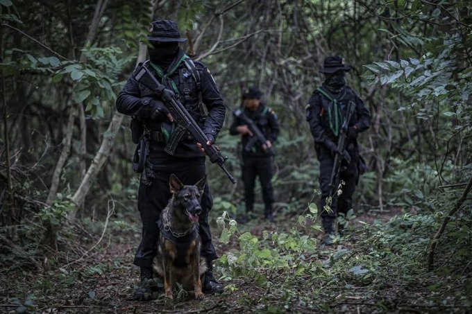 Hình ảnh do Tổng cục Dân sự thuộc Quân đội Hoàng gia Thái Lan công bố ngày 11/6 về nhóm quân nhân tuần tra biên giới cùng chó nghiệp vụ. Ảnh: RTA