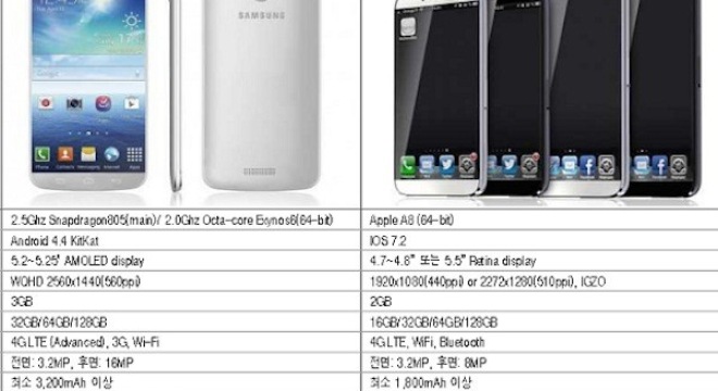Công ty chứng khoán Hàn Quốc là KDB Daewoo Securities Research đã cung cấp gần như đầy đủ mọi thông tin về hai siêu phẩm của năm 2014 là iPhone 6 và Samsung Galaxy S5.