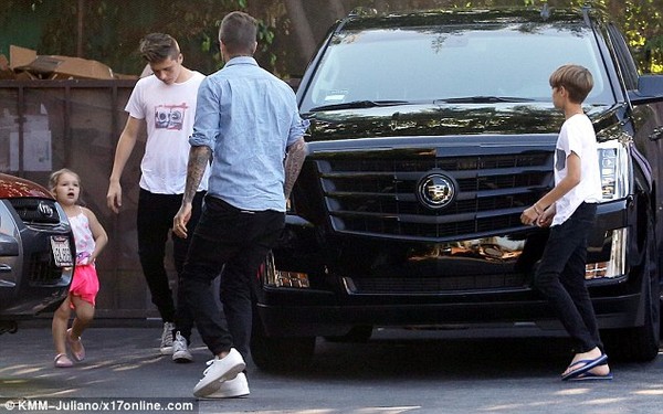 Ở xứ cờ hoa, mọi động tĩnh của nhà Beckham vẫn không thể lọt qua các tay săn ảnh.