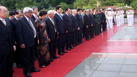 Sau đó, đoàn đã đến đặt vòng hoa, vào Lăng viếng Chủ tịch Hồ Chí Minh. Các vị lãnh đạo Đảng, Nhà nước bày tỏ lòng thành kính, lòng biết ơn vô hạn với Bác Hồ, người sáng lập và rèn luyện Đảng cũng như công lao to lớn của Người đối với sự nghiệp cách mạng vẻ vang của Đảng và dân tộc ta.