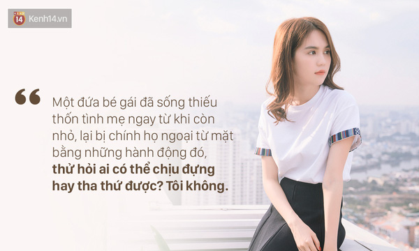 Một đứa bé gái đã sống thiếu thốn tình mẹ ngay từ khi còn nhỏ, lại bị chính họ ngoại từ mặt bằng những hành động đó, thử hỏi ai có thể chịu đựng hay tha thứ được? Tôi không. Người ta đối với tôi thế nào tôi đáp lại như vậy. Tôi chỉ không giúp đúng như điều năm xưa họ từng làm với mình, chứ đâu kiếm chuyện hại họ thêm mà bảo tôi ác?