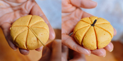 Dùng một chiếc tăm nhỏ để tạo hình khứa bí đỏ.