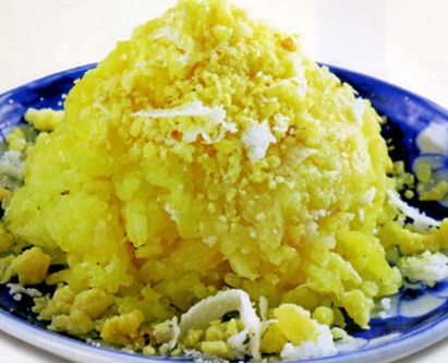 Món xôi vò với những hạt xôi mềm tơi, vàng đều, béo ngậy rất ngon.