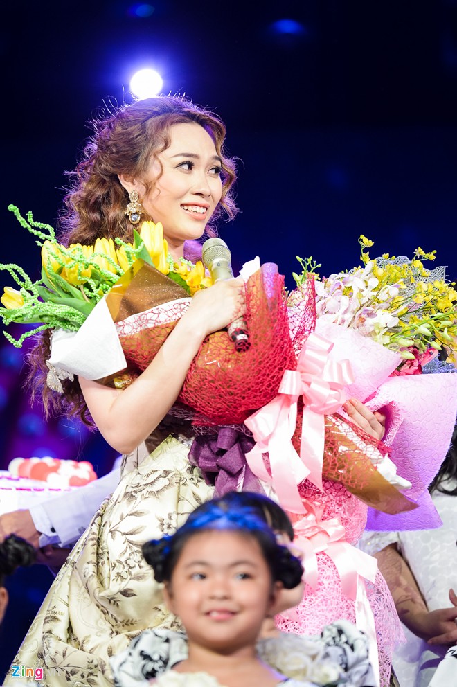 Mỹ Tâm cảm động trước sự chu đáo của người anh thân thiết. Cô càng hạnh phúc hơn khi nghe Đàm Vĩnh Hưng tiết lộ, anh đã đứng dưới sân khấu đợi rất lâu và hồi hộp để chờ đợi giây phút tặng hoa cho cô.