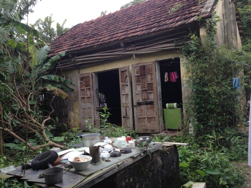Nhà ông Hành khác hẳn với những nhà hàng xóm, căn nhà mái ngói ba gian, cũ kỹ đối diện với một nếp nhà tầng chừng hơn chục m2. Tất cả đều trống tuềnh trống toàng.